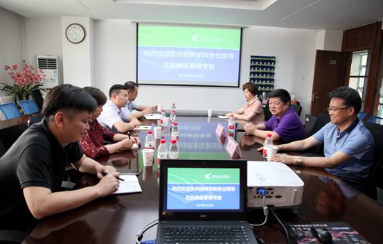 参观结束后,双方在综合楼4楼会议室进行了座谈交流。苏州技师学院于今年6月份与我院签署了校校合作协议,拟在联合办学、教学科研、技能大赛、中外合作、师资培训等方面与我院展开广泛的交流与合作。此次座谈中,双方就下一步具体的合作事项进行了明确与细化,同时针对学院党建工作、教学管理、技能大赛、后勤服务等方面进行了经验交流。