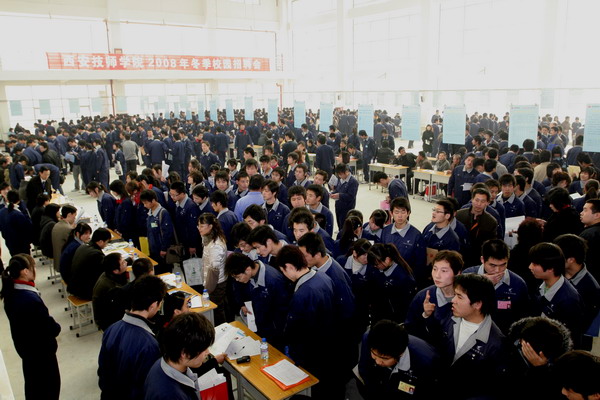 学生在新校区文体中心参加百名企业校园招聘会