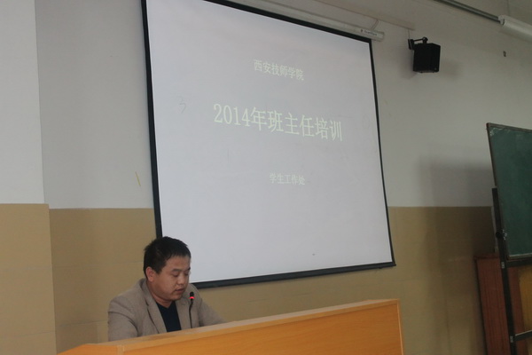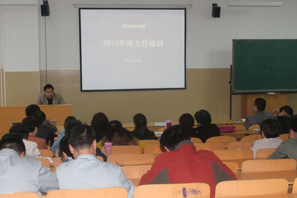 根据学院2014年素质年教育计划,结合我院学生管理的实际问题,学生工作处于2014年4月11日下午2:30在咸阳校区C座402教室对全体学管人员及班主任进行了一次班主任管理工作培训,共有47名班主任和学管人员参加了本次培训。