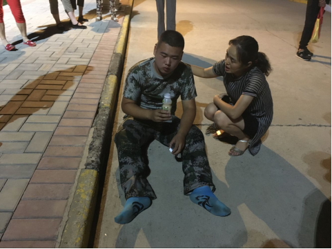 军训第四天晚上,高压电器系的一个孩子在训练时,高血压发作,忽然昏倒。他的班主任李严静老师立刻赶到,守护在孩子身边,积极联系医生救治,因为担心这个孩子会脑溢血,所以让他一直平躺在地上,而李老师就一直蹲在他身边照顾他,陪他说话,给他宽心,直到医生赶到,确认这个孩子没有危险后,李老师才站起来开始联系孩子的家长,通报情况。因为长时间下蹲,李严静老师站起来时差点摔倒。