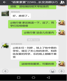 (图为高压电器系22WG发电厂及电力系统班班主任在家长群和家长的对话)