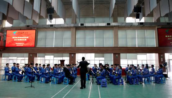 2018年6月20日下午四点,在经过了30天集中强训后,西安技师学院军乐团在文体活动中心进行了强训汇报表演,学院副院长杨广明、部分职能部门和教学系负责人、学管及师生代表观看了此次演出。