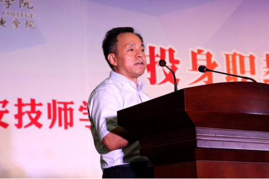 西电集团副总经理丁小林代表公司向全体教职工送上节日的祝福,并提出殷切希望。他希望技师学院全体教职工以习近平新时代中国特色社会主义思想为指导,志存高远,立德树人,把个人理想与学院发展紧密联系在一起,以高尚的职业道德,精湛的教育艺术,卓有成效的工作业绩,为国家培养更多的优秀技能人才,用实际行动为实现中华民族伟大复兴中国梦添砖加瓦!