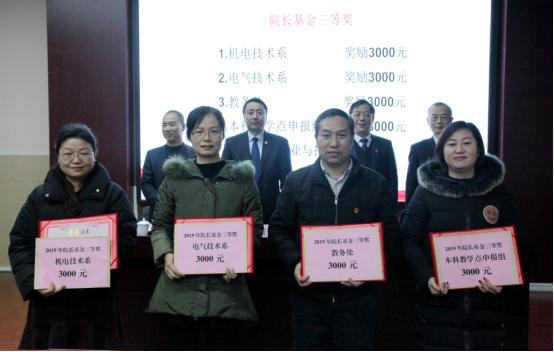 会上,学院副院长冯小平和总会计师白宝成同志分别宣读了十余项表彰决定和获奖名单。学院授予党群纪检处、培训中心2个部门为“先进部门”,机电技术系机电教研室等7个班组为“先进班组”,姚永乐、崔嵬等26人为“先进工作者”,余欣、严寒冰、樊龙等15人为“优秀教师”,王晓霞等6人为“优秀班主任”荣誉称号;学院工会授予后勤中心分会、现代服务系分会为“先进分会”,滑玲等9人为“优秀工会积极分子”。学院领导分别为受表彰的集体和个人颁发了奖牌、荣誉证书和奖金,对获得2019年度院长基金的集体和个人以及在2019年度各类技能大赛中获奖的选手和教练进行了表彰。