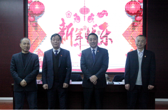 会议最后,学院院长冯柱带领领导班子成员登台向全体教职工拜年。他向2019年度在工作岗位上辛勤工作的教职工表示衷心感谢,希望受表彰的集体和个人再接再厉,为学院发展做出新的贡献;同时,他号召全体教职工2020年以习近平新时代中国特色社会主义思想和党的十九届四中全会精神为指引,只争朝夕,不负韶华,鼓足干劲,团结一致,为全面完成学院各项工作做出新的贡献。