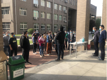 4月16日早上,全体教职工在C座楼下集合,王楠主任做主要讲话。他首先感谢大家在疫情期间所做的工作,随着开学时间的推进,对所有的办公室和教室要进行全面的消毒,是配合全院联防工作的一部分重要内容,既为了确保学生进校的安全,也是为防控疫情的有效努力。陈龙会主任做补充发言,他对大家按时返校工作表示肯定,要求以教研室为单位分三大块,分别由赵鸿、宋国亮、陈宏茹三位老师负责。