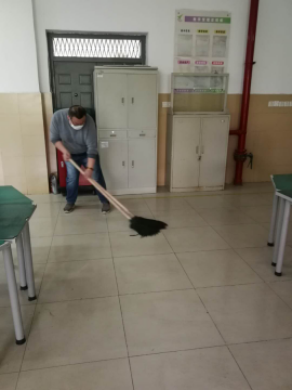 布满灰尘的教室,经过老师们一天的努力工作变得焕然一新。李治军等一些年龄较大的老师们不怕脏和累,冲拖把,扫地,擦桌子;孙依盈老师是一位准妈妈也在接水扫地努力打扫,所有的老师们都是为了学生开学以后有一个干净整洁安全的学习环境在不遗余力地努力。让我们为他们毅然返校提前进行的消杀工作大大地点赞。