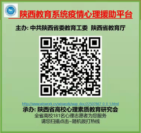 5、关注专业的心理健康帮助渠道。学院始终关注同学们的心理健康,班主任老师日常通过班级微信群、QQ群、电话等方式保持和同学们的沟通与联系,及时疏导同学们的情绪,指导学生在疫情期间如何保持心理健康。再次也鼓励同学们多关注专业正规的心理健康教育平台,主动自学心理健康常识。在这里推荐大家欢迎前来求助“陕西教育系统疫情心理援助平台”。