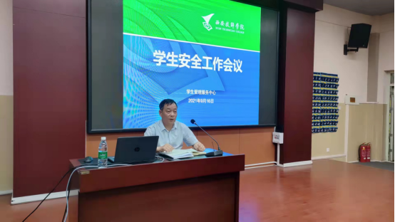 为贯彻落实学院9月15日全体中干安全专题工作会议精神,做好学生安全管理工作,学生管理服务中心于2021年9月16日下午在C302召开学生安全工作会议,学院党委副书记、纪委书记罗文科,学管中心负责人,各系分管学生工作主任、全体学管、全体班主任,全体教官,公寓主管、保卫主管参加了本次会议。