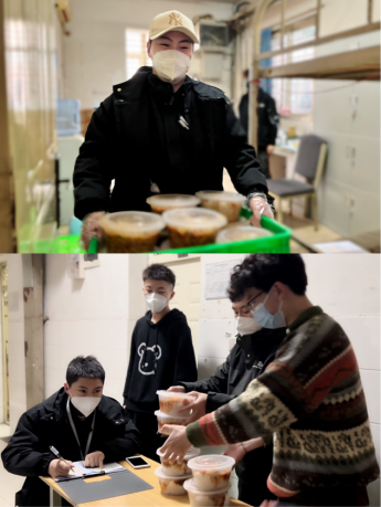 赵鹏老师:上过中央电视台的明星教师、国家技术能手、各种比赛优秀教练。疫情防控期间,赵大师放下手中的粉笔,端起送饭的饭筐。一筐就是20多份饭,一日三餐,奔波在宿舍楼与食堂之间,保证我们的学生能够吃到热乎乎的饭菜.虽然辛苦,但是赵大师标志性的笑容始终挂在脸上,乐观向上的态度感染着我们每一位师生。