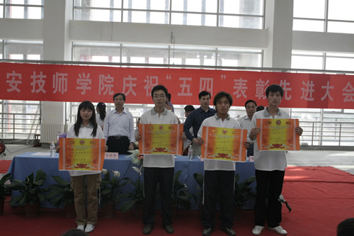 大会在庄严的国歌声中拉开了帷幕。院长李长江,副院长王德意、贺惠民,党委副书记纪委书记袁建章,及各系部主任出席大会,各级团组织负责人、各类获奖学生1200余人参加大会,由学生工作部部长刘雅萍主持大会。会上青年学子送上鲜花感谢领导对青年工作的支持。袁建章书记和贺惠民副院长分别宣读《共青团西安技师学院委员会关于表彰2008年先进集体及先进个人的决定》、《西安技师学院关于表彰2008-2009学年度“三好学生”、“优秀学生干部”的决定》,先进团支部、优秀团干部、优秀团员、学雷锋标兵、三好学生、优秀学生干部代表分别上台领奖,院领导、各系部主任为他们颁发了奖状及奖品。颁奖结束后,机械工程系康亚蒙同学代表受表彰学生在大会上作了“立志学习,回报学校,弘扬五四精神”的发言。