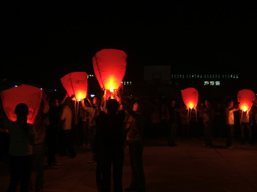 有的同学手捧寄托哀思的孔明灯,虔诚的放飞,给逝者送去祝福,并激励生者,珍惜生命,奋发上进;
