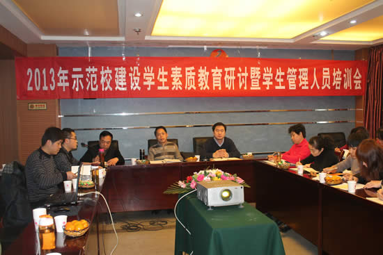 为进一步加强学生素质教育,全面提高学院办学水平和育人质量,2013年元月14日至15日,由学生工作处组织召开了“示范校建设学生素质教育暨学生管理工作研讨会”,学院领导、各系主任、学生管理人员、优秀班主任代表和学生处全体人员参加了会议。会议由学生工作处黄磊处长主持。