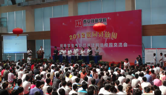5月25日-30日,我院隆重举办2012年校园开放周活动,为学生家长、用工企业、生源学校和社会各界人士更加直观的了解我们学院提供了交流平台。5月26日上午9点30分,在咸阳校区文体中心,隆重召开了2012年校园开放周优秀学生表彰暨共建和谐校园交流会。学院领导均列席参加,对我院的优秀学生进行表彰,获奖的集体共49个,个人共1300余人。