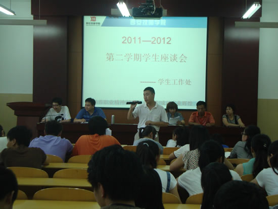 为进一步提高服务质量,在学习和生活等各方面为同学们的健康成长创造更为便利、舒适的条件,听取同学们对学院的教学、管理等方面工作的意见和建议,学生工作处于6月12日分别在咸阳校区教学楼C座301室和昆明路校区107教室召开了本学期学生座谈会,出席会议的有学生工作处副处长李智、杨坤,各相关部门代表、各系室学管老师、全院112名学生代表及院学生会代表。