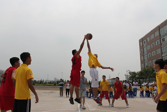 参观结束之后,活力激情的两院学生友谊篮球赛开场了,篮球啦啦队表演了青春飞扬的健美操以活跃赛场,两旁的观众越聚越多。一声哨响,鲜红和亮黄在赛场上开始了角逐,大家展现了精湛的篮球技术和年轻人拼搏向上的精神风貌,场面激烈、扣人心弦,场外,观众为双方队员呐喊、助威。两队频频打出精彩配合、快攻,最终我院取得了本次篮球友谊赛的胜利,比赛在和谐的气氛中圆满结束。