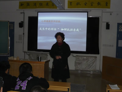 11月29日下午15:30在咸阳校区E—430教室,我校区举行了以“成长中的烦恼——认识自我”为主题的心理健康讲座。学生管理办公室主任王建秀老师主讲。