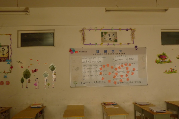 学生工作处高度重视教室管理工作,积极举行教室文化建设评比活动,既丰富了学生的业余文化生活,也提升教室的文化品位,更在潜移默化中达到了启示教育的作用,从而使“创建和谐校园”的意义深入人心。