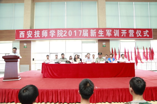 8月23日上午九点半,西安技师学院2017届新生军训开营仪式在我院文体活动中心隆重举行。副院长赵辉、各部门负责人及陕西君威学生军训教官派遣队的领导和教官们参加了开营仪式。仪式由学生工作处处长黄磊主持。