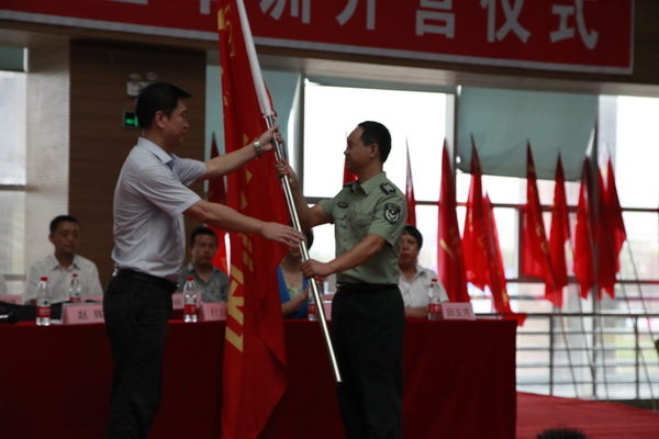 赵辉副院长代表学院向2017届全体新生做军训前动员,他向参训的新生提出了五点希望与要求。随后,军训团参谋长王刚宣读了军训任务和计划。工业自动化系17G数维1班新生陈晨代表全体参训学生发表了受训承诺。他表示,一定会以昂扬的斗志、严格的纪律、团结的精神来迎接这次难得的军训。随后,赵院长向军训教官授军训团旗。