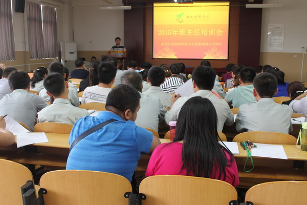 为进一步提高班主任的工作能力和综合素质,学生工作处根据班主任工作的实际需求,于9月23日下午,举办了2015年班主任工作培训,各系学管及班主任共58人参加了此次培训。
