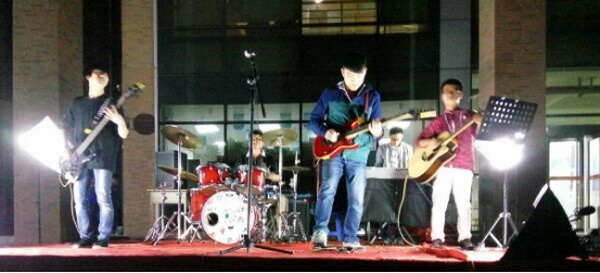 5月12日晚8:00,学院电声乐团fly乐队在文体中心门口献上了一场精彩绝伦的校园演唱会。这也是乐队成立以来,第二次专场演出。