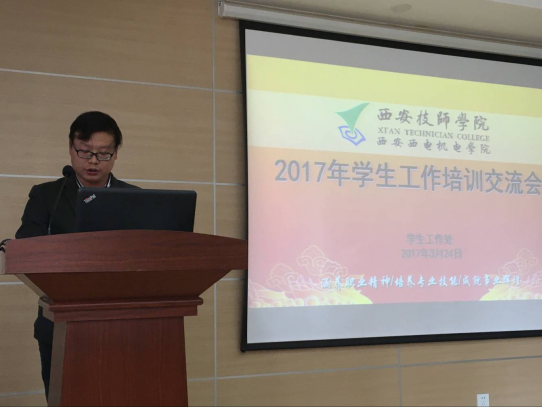 在会议上,学生工作处丁安荣老师就班级管理的日常工作内容和要求对全体班主任进行了培训,使班主任对自己的工作有了更进一步的认识和了解。同时班主任代表秋彩霞、常薇、郑亚西、高峰和学管干事李峰老师从学生心理健康、素质教育、班级管理方法入手,通过自己的亲身经历和体会对如何做好班级管理和班主任工作进行了工作交流。常薇老师针对所带班级学生的特点,通过平时对学生察言观色去认识学生,了解学生,在教育学生的过程中,用苦口良药中加点糖,逆耳的忠言前说些顺耳的话等方式来调动学生的积极性和班级的凝聚力。李峰老师在交流中将 “勤”作为班主任日常工作重点,总结出三点:即对学生要敢于管理、勤于管理、善于管理,让学生信任班主任,信服班主任,才能够做好学生管理工作,才能够教育学生健康成长。