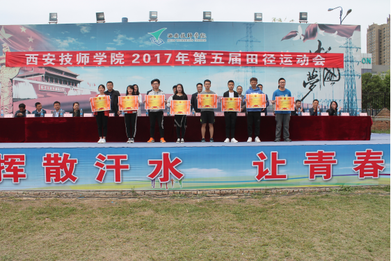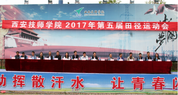 西安技师学院学院第五届田径运动会经过一天半精彩纷呈、紧张激烈的赛事角逐,于4月21日中午11:30举行了闭幕仪式。闭幕式由学生工作处处长崔嵬主持,学院院长李长江、副院长杨广明、赵辉等领导参加闭幕式。