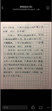 全系26位班主任利用腾讯视频会议、蓝墨云班会议、qq群直播、微信视频通话、微信语音等多种平台开展了主题教育班会,实现了学生思想政治教育的及时性、即时性。通过观看视频,学生们了解到自疫情发生以来,党中央高度重视,始终把人民的生命安全和健康放在第一位,习近平总书记亲自指挥,全国上下团结一致,众志成城,坚决打赢疫情防控阻击战。“白衣天使”用生命守护生命,人民子弟兵冲锋在前,84岁高龄的钟南山院士不惧风险,奔赴武汉,“95后”医生勇毅前行、舍己救人。