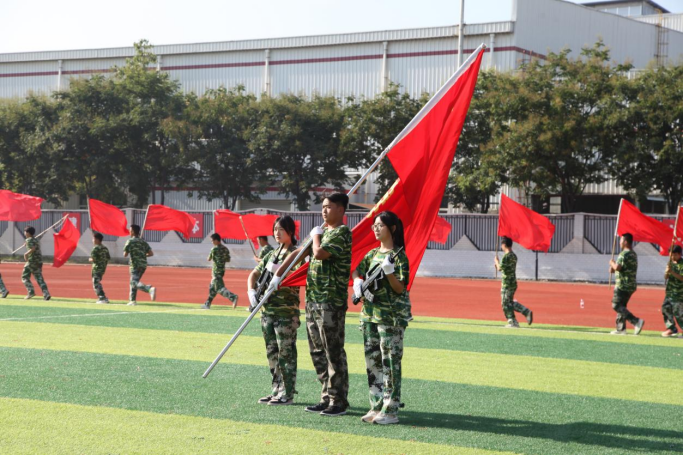伴随着雄壮的国歌声,鲜艳的五星红旗冉冉升起,军训闭营仪式正式拉开帷幕。步伐整齐,口号响亮,气势磅礴,英姿飒爽.....全体新生在汇报演出中表现的激情昂扬。每个方队都焕发出无限的活力,充满了蓬勃的朝气,彰显出近日脱胎换骨的改变。