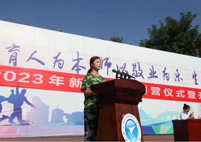 军训会操表演结束后,军训团团长、学生代表分别作了发言,既分享了在军训生活的感受,又表达了明确学习方向、珍惜时间、脚踏实地的决心。