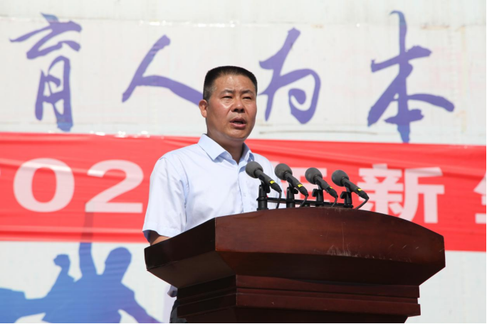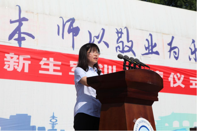 党委副书记、纪委书记孙占亚向军训团赠锦旗后发表了热情洋溢的军训工作总结暨开学典礼讲话,他首先代表学校,向为军训付出辛勤汗水的各位教官和班主任表示衷心的感谢!向顺利完成军训任务的全体同学,表示热烈的祝贺!并对同学们在军训中表现出的敢于吃苦、奋力拼搏的精神给予高度肯定。同时他还勉励全体同学要将军训成果转化为学习的动力,把军训过程中练就的优良作风保持下去;把军训期间养成的良好品质和作风,带到今后的生活、学习中去,一言一行都要高标准、严要求,遵守纪律,刻苦学习,踏实做人,以优异的成绩回报老师、父母。