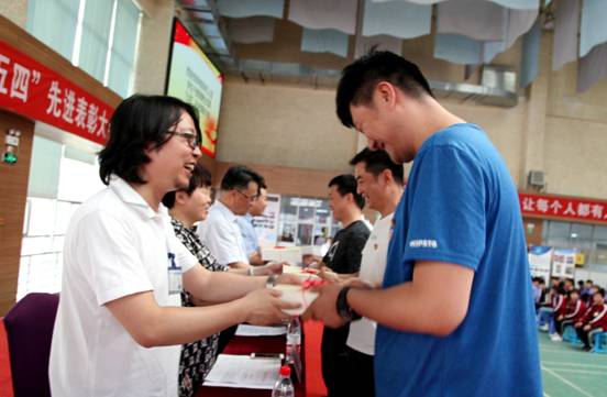 团委书记高健宣读了学院2018年五四先进表彰决定,参会领导为受表彰的学生代表颁发证书和奖状。
