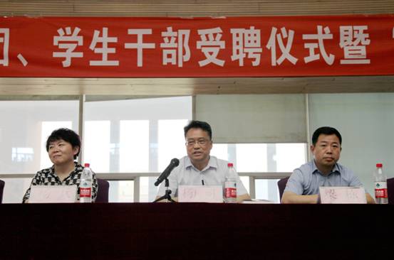 学生管理服务中心主任杨兵宣读了团委、学生会干部受聘决定,学院领导对受聘学生颁发了聘书。