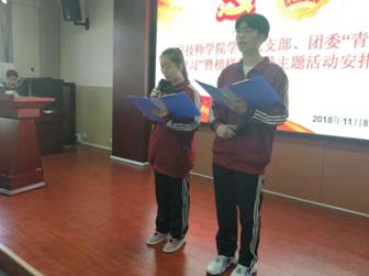 为深入学习贯彻习近平新时代中国特色社会主义思想和党的十九大精神,进一步落实集团团委“青年大学习”要求,学生党支部、学院团委于2018年11月8日下午3:45在C座302教室组织开展“不忘初心跟党走”主题党日活动。学院团委书记、学生管理服务中心副主任高健、各系团总支书记、学生党员、入党积极分子,学院团委成员,各团支部委员、团员、学生会干部、学生代表各系共计180人参加了本次活动。