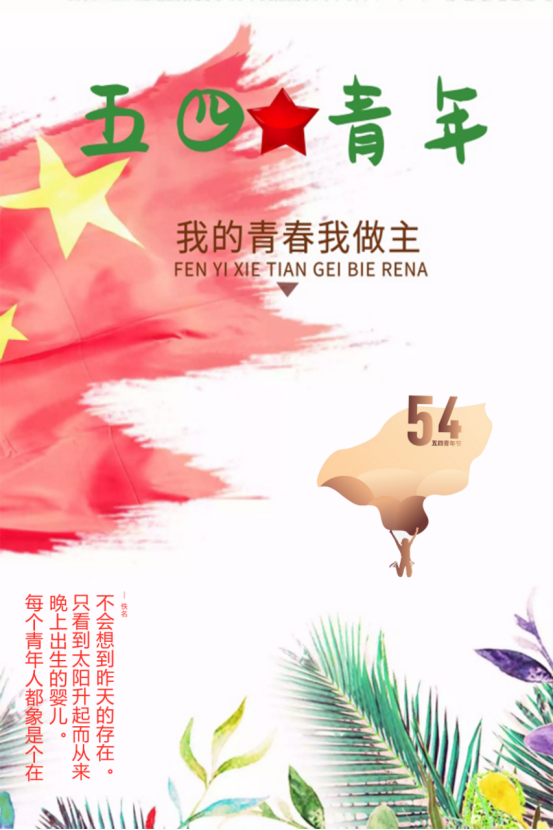 总之,五四精神代表着诚实的,进步的,积极的,自由的,平等的,创造的,和平的,相爱互助的,劳动而愉快的,一种青春的赞歌。让我们在这个特殊的时期里,做好自己,为国家奉献出微小却又强大的力量,而每个人的力量汇聚起来,终会化为巨大的洪流,度过难关!