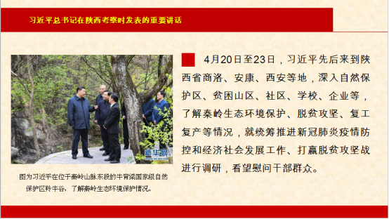 学习今年习近平总书记来陕考察的重要讲话和重要指示精神。