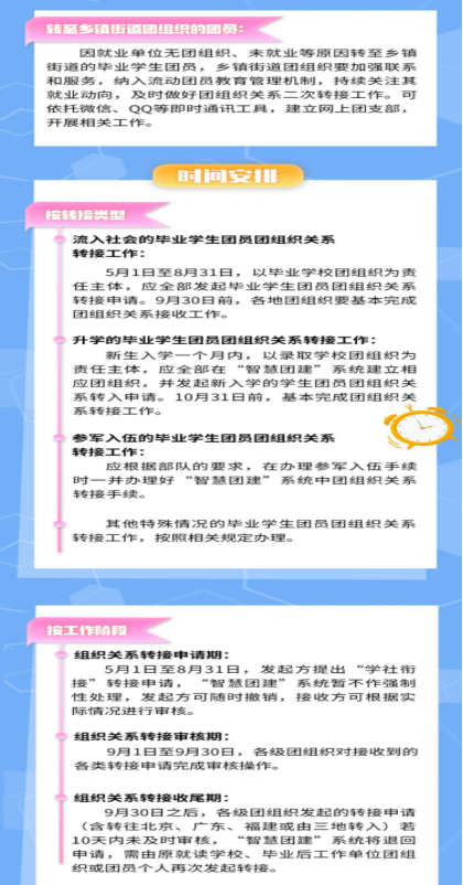 为顺利推进“学社衔接”工作,自5月起,全团依托“智慧团建”系统开展2020年毕业学生团员团组织关系转接工作,直观图解来了!