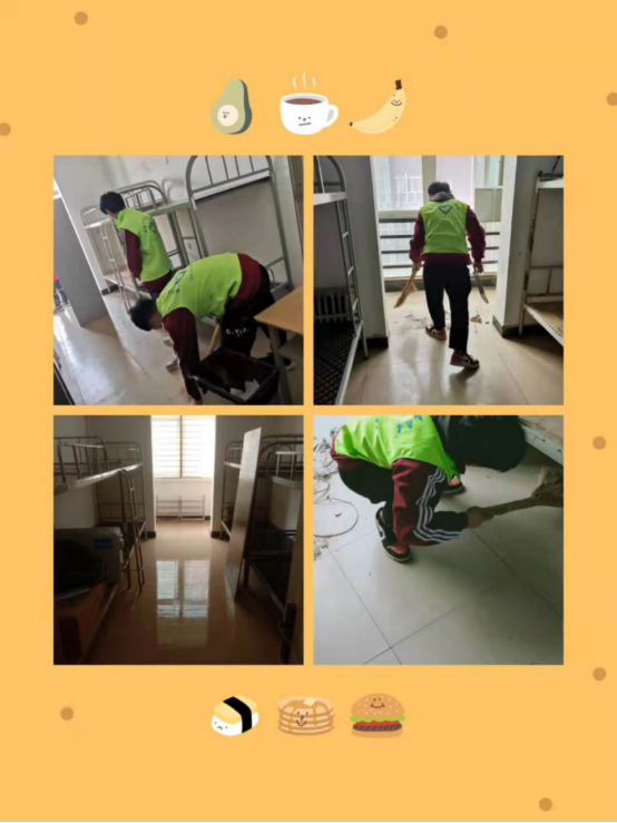 三月雷锋月,适逢学院春季新生开学,由30名学生党员、团员组成的志愿者服务队,在春季新生开学前夕,对学校31间新生宿舍进行彻底打扫。