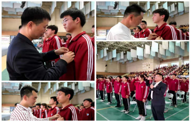 在学院团委副书记李凯的带领下,197名新团员面向鲜艳的团旗,举起右手,用洪亮的声音庄严宣读“我志愿加入中国共产主义青年团”的铮铮誓言,学院各团总支书记及部分先进代表为新团员佩戴团徽。