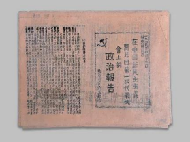 图为任弼时《在中国新民主主义青年团第一次代表大会上的政治报告》