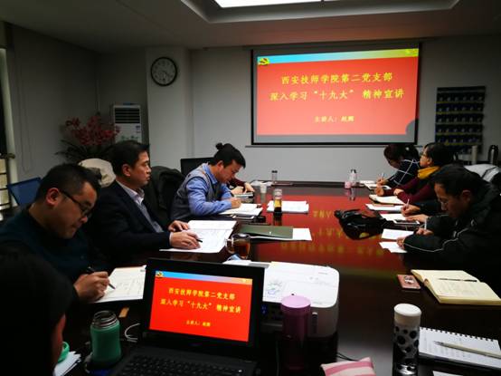 会议最后,由学院党委委员、副院长赵辉同志带领支部全体党员进行深入学习十九大精神的专题宣讲。赵院长围绕近期集团党支部书记履职能力培训中关于十九大精神学习的一些新要求,结合集团公司2017年的经济工作会议精神,对全体党员进行了一次深刻的专题学习教育。