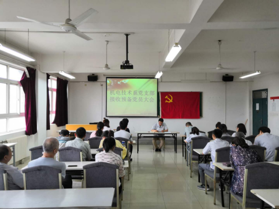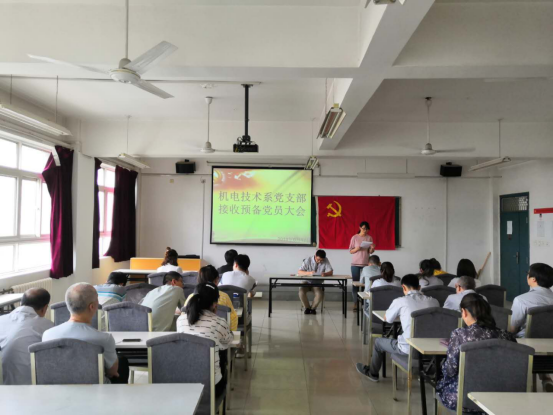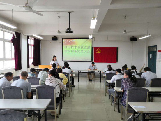 2019年6月17日,西安技师学院机电技术系党支部组织全体党员在E-302召开了关于接收徐沛同志和刘文玲同志为预备党员的支部大会。党支部书记高德龙同志主持了此次会议。