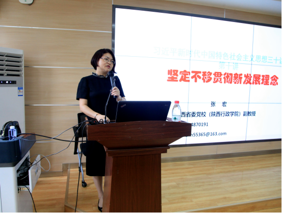 本次学习主要采取专家集中授课的方式。邀请了中共陕西省委党校(陕西行政学院)副教授张宏、王诚安两位老师分别就《习近平新时代中国特色社会主义思想三十讲》、《习近平新时代中国特色社会主义思想学习纲要》两部分内容进行专题授课。张宏老师以《坚定不移贯彻新发展理念》为主题,向大家讲授了怎么理解“坚持创新发展、协调发展、绿色发展、开放发展、共享发展”是关系我国发展全局的一场深刻变革,五大发展理念的内涵和要求是什么,如何把五大发展理念变成五大发展行为三个方面的内容。王诚安老师则从习近平新时代中国特色社会主义思想总论,中国特色社会主义进入新时代,新时代坚持和发展中国特色社会主义的基础理论、条件和保证、能力建设,新时代中国特色社会主义的战略布局、总体布局等方面详细讲解了《习近平新时代中国特色社会主义思想学习纲要》部分章节内容。