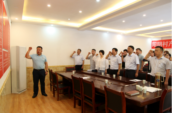 党课结束后,陕西省人社厅扶贫干部带领全体党员重温入党誓词。在庄严的党旗下,大家集体宣誓,铿锵有力的声音在会议室里久久回荡,在每一个人的心里烙下了深深的印记。会议最后,双方还就技能扶贫工作进行了交流谈心。