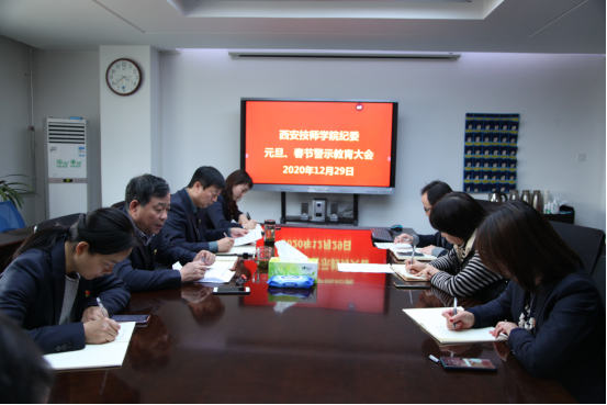 元旦、春节将至,为进一步巩固落实中央八项规定精神,严防节日期间“四风”问题反弹,12月29日,西安技师学院纪委组织召开“双节”前警示教育大会,学院纪委书记罗文科、院长助理姚永乐、各党支部书记、纪检委员及党群纪检处相关人员参加了会议。会议由罗文科书记主持。
