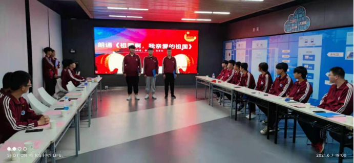 交流会上,24WG机电一班团支部书记吉翔同学以互问互答的方式向大家提出党史小问题,同学们进行抢答,共同学习党史知识;史念同学向大家分享了她参观八路军西安办事处纪念馆的感想心得;最后,全体团员进行了文艺表演。高云普、白岩松和李南杰三位同学为大家带来朗诵《祖国啊,我亲爱的祖国》;尚孝中、宋星宇、李彦锡、李睿琦和武旭同学表演合唱 《团结就是力量》;常嘉硕、杨云霄同学带来吉他弹唱《稻香》;吉翔、李嘉亮和黄一然同学带来朗诵《少年中国说》;王智斌、张博表演了相声《你好,党》。