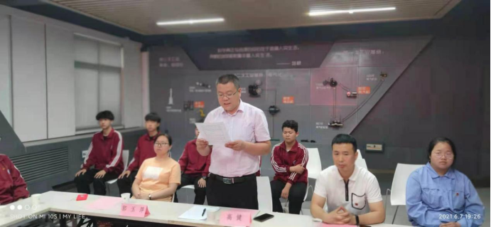 6月7日晚,机电技术系24WG机电一班团支部在D座智能制造中心举行基层团支部学党史交流会,学院团委书记高健,机电技术系团总支书记赵耿、副书记王雅楠以及24WG机电一班班主任和全体团员青年参加了会议。