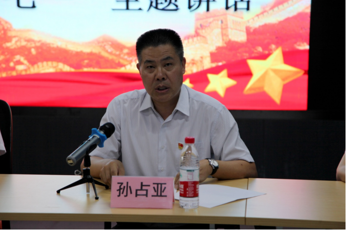 活动在全体与会人员奏唱国歌声中拉开帷幕。学院党委副书记、纪委书记孙占亚做庆“七一”主题讲话。孙占亚书记在讲话中重温了党的光辉历程,指出学院党委班子应强化政治担当,做好顶层设计,抓好谋篇布局,把握发展方向,决定重大问题,不断提高把握新发展阶段、贯彻新发展理念、构建新发展格局的政治能力和战略眼光,敢于担当、善于作为,把党中央和上级党委的决策部署贯彻落实好。孙占亚书记动员全体共产党员充分发挥先锋模范作用,不忘初心,牢记使命,为学院高质量发展再立新功、再创佳绩,为全面推进学院“十四五”规划而不懈努力。