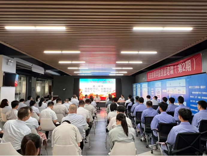 为庆祝中国共产党成立101周年,宣传党的光辉历程和丰功伟绩,激励广大党员干部积极投身学院改革和建设,加快学院高质量发展,以优异成绩迎接党的二十大胜利召开,2022年6月30日下午,西安技师学院党委在智能制造中心大厅举行庆“七一”主题党日活动暨党委书记讲党课活动,学院领导班子成员、中层干部、党支部书记、支部委员、各部门主管以及2022年新发展党员参加了本次活动。活动由学院党委党委委员、副院长张大宁主持。
